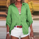 Dames Linnen Blouse met Lange Mouwen en Knoopsluiting