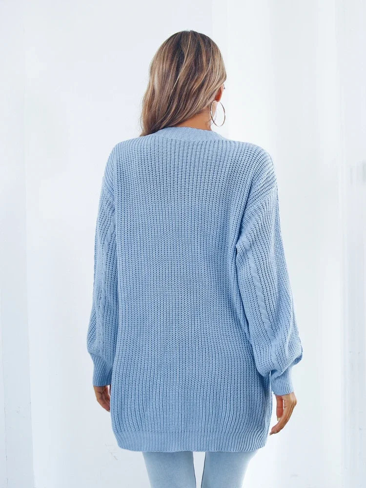 Deze gebreide cardigan combineert comfort en stijl met zijn losse pasvorm en lange ontwerp. Ideaal voor het samenstellen van moeiteloze outfits, omhult het je in zachtheid en geeft het je look een ontspannen maar verfijnde touch. Een perfecte keuze voor koele dagen of voor een relaxte, chique stijl.